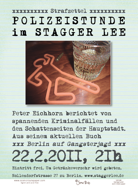 berichte ich in der wundervollen Cocktailbar „Stagger Lee“ in Schöneberg, aus meinem aktuellen Buch „Berlin auf Gangsterjagd“ und werde einige der faszinierenden und spannenden Kriminalfälle vorgetragen, die Berlin in verschiedenen Zeiten bewegt, amüsiert oder erschüttert haben.