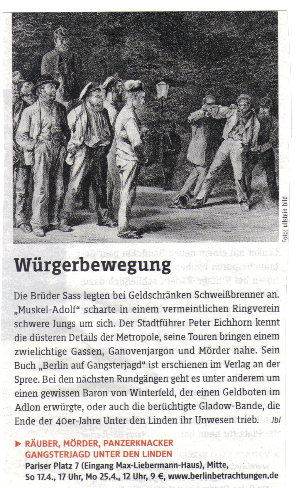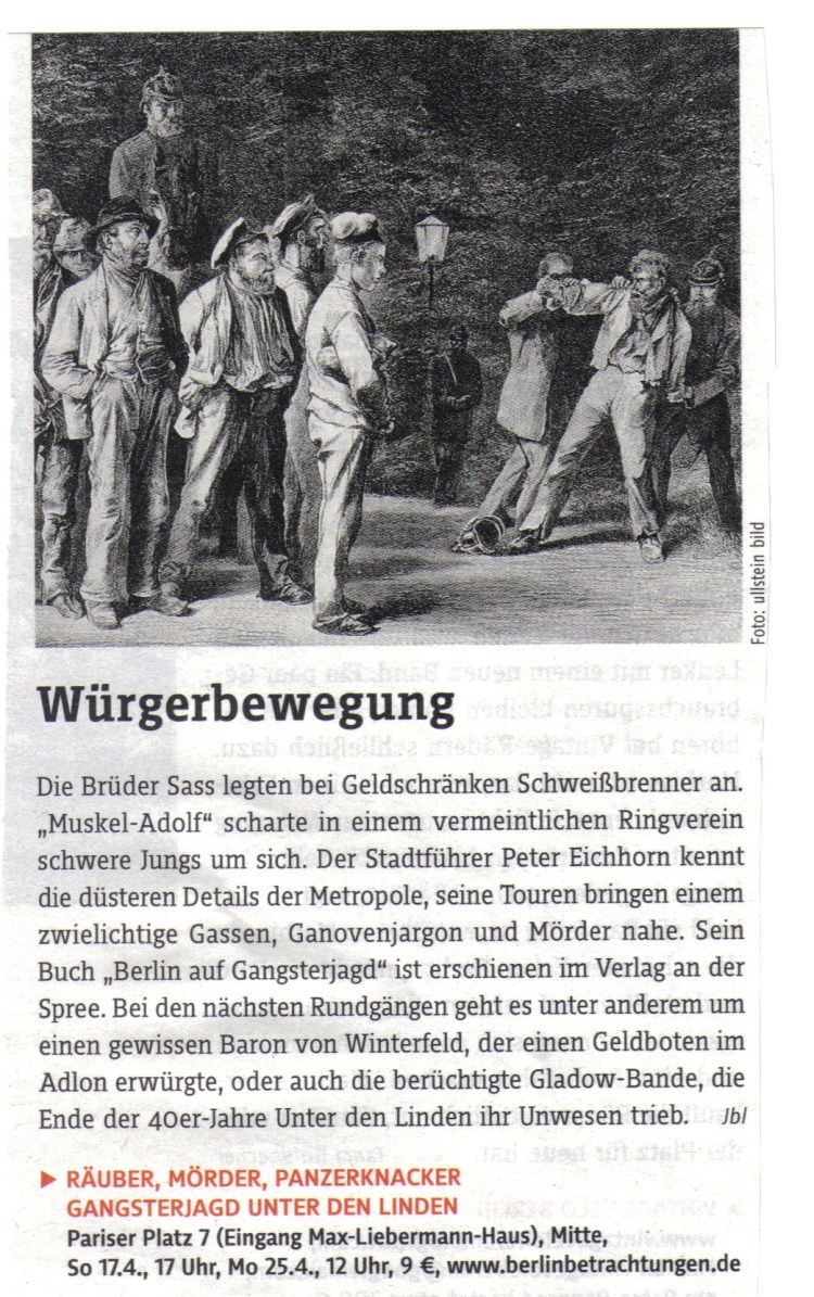 In der Ausgabe 09/2011 berichtet das Stadtmagazin tip Berlin über mein Buch „Berlin auf Gangsterjagd“ und über die Führung „Gangsterjagd Unter den Linden“